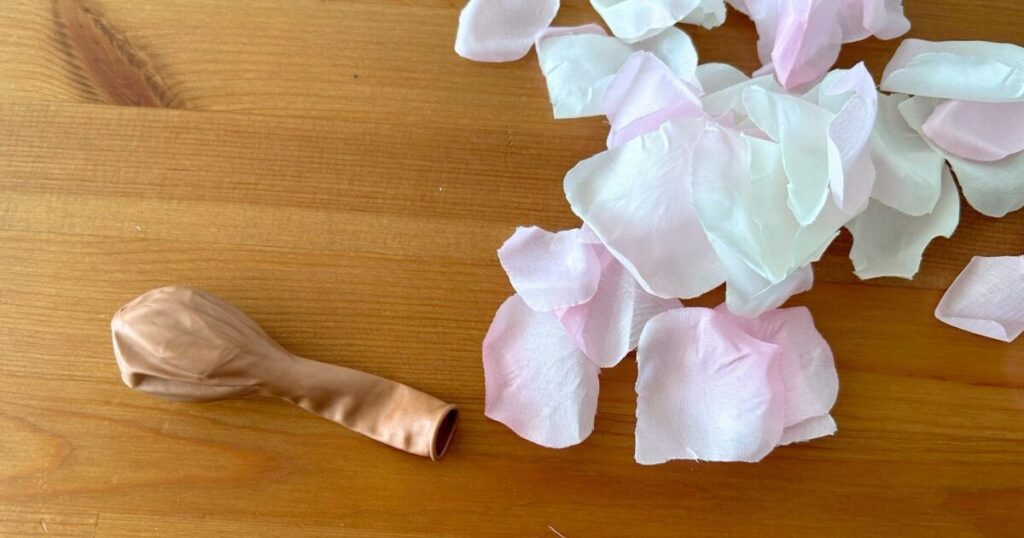 ②カラーバルーンにフラワーペタルを入れる
