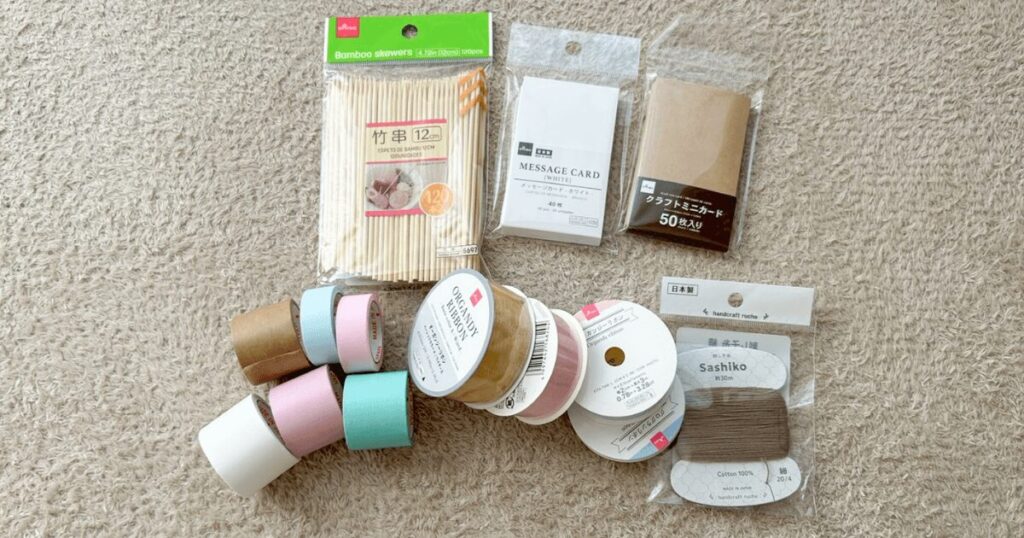 100均では今回紹介した作り方で使用した商品以外にも、ジェンダーリビール旗やケーキトッパーに活用できる商品がたくさんあります。