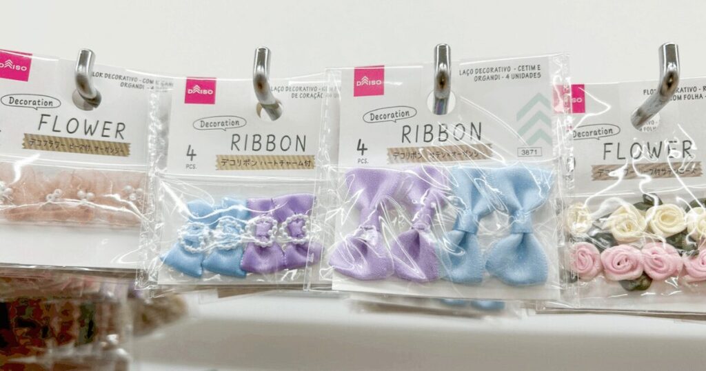 今回は紐で販売されているリボンを使用しましたが、ハンドメイド売り場にはデコレーション用に完成されたリボンも。
